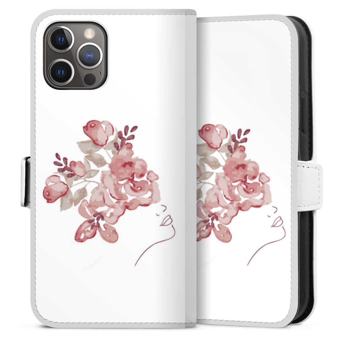 For our Sideflip Case we are using our advanced direct printing technology. The back and frontside are fully printabale, the inside of the phone bag is left unprinted. You can order the phone case without print, printed completely or also with a partial print.