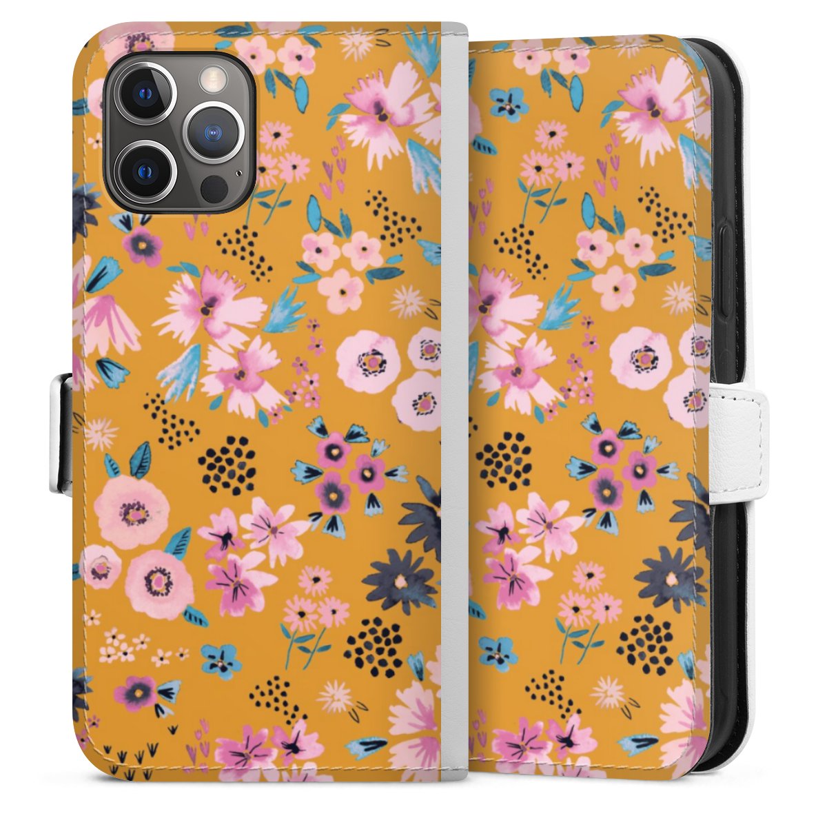 For our Sideflip Case we are using our advanced direct printing technology. The back and frontside are fully printabale, the inside of the phone bag is left unprinted. You can order the phone case without print, printed completely or also with a partial print.