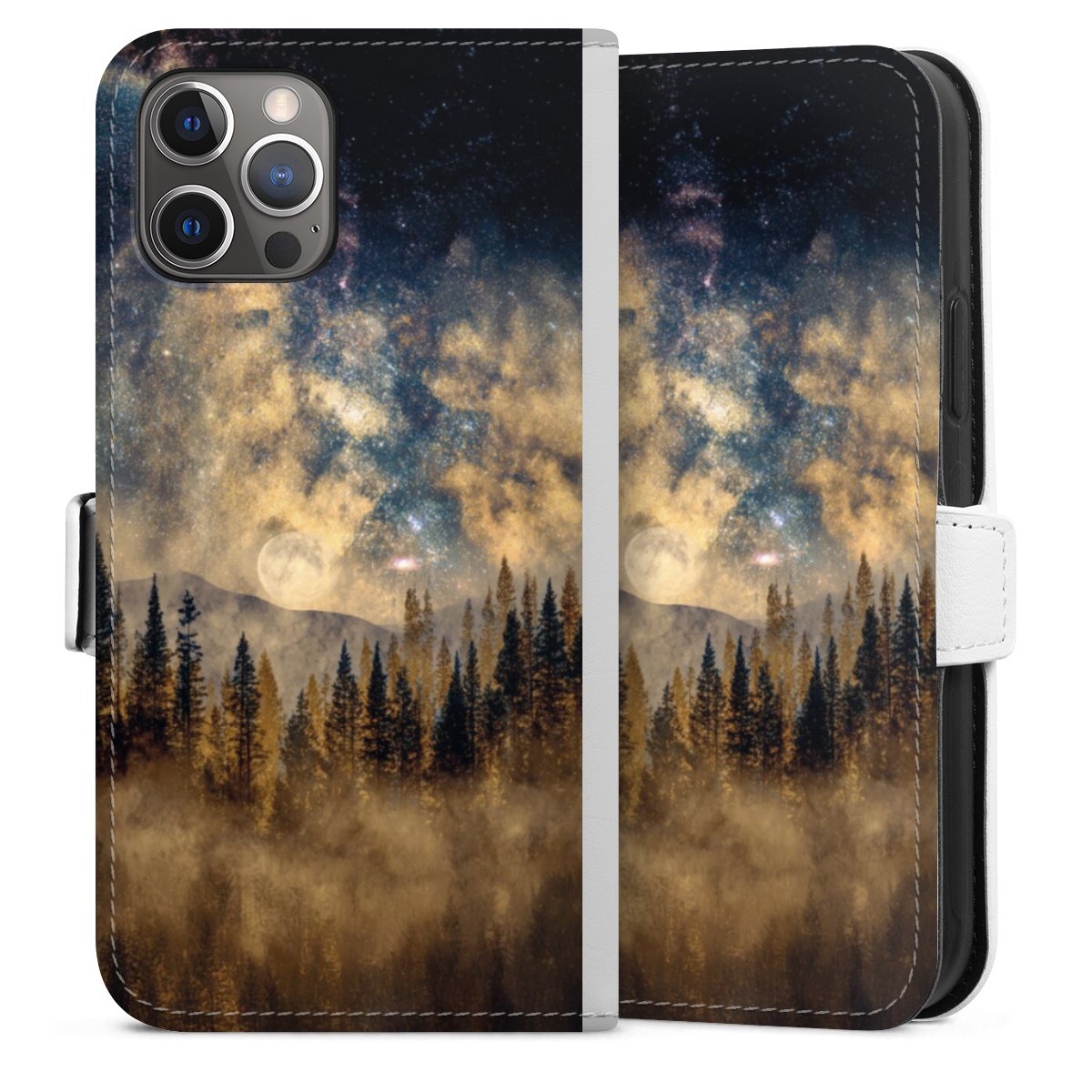 For our Sideflip Case we are using our advanced direct printing technology. The back and frontside are fully printabale, the inside of the phone bag is left unprinted. You can order the phone case without print, printed completely or also with a partial print.