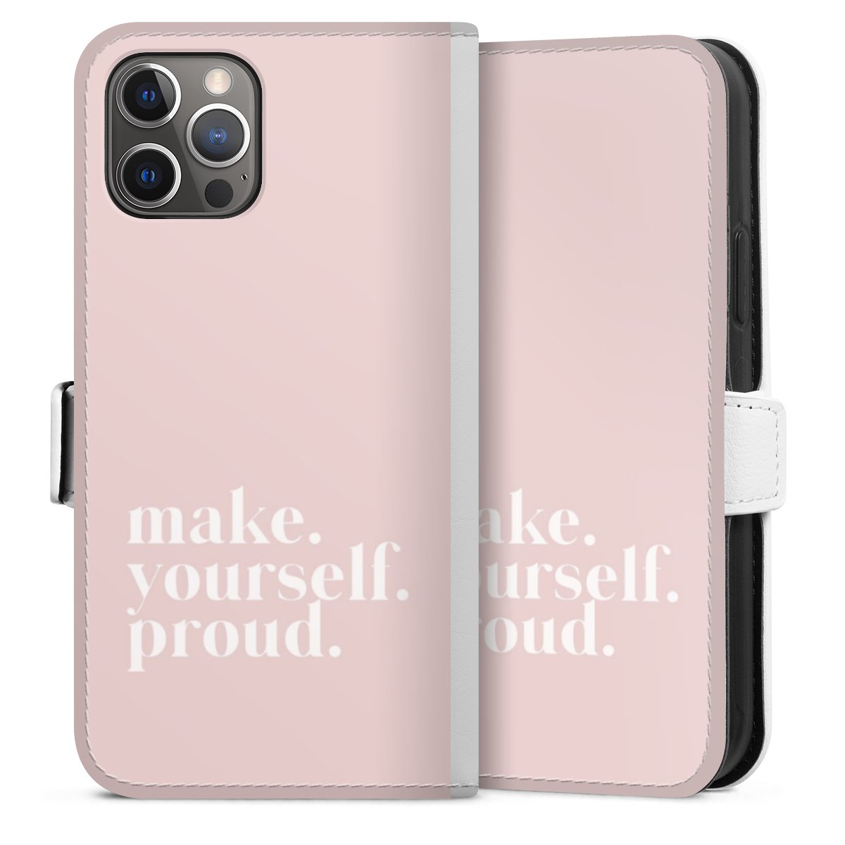 For our Sideflip Case we are using our advanced direct printing technology. The back and frontside are fully printabale, the inside of the phone bag is left unprinted. You can order the phone case without print, printed completely or also with a partial print.