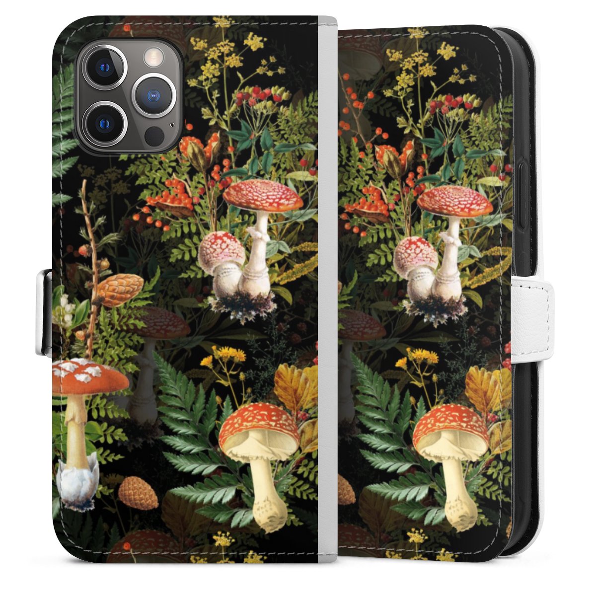 For our Sideflip Case we are using our advanced direct printing technology. The back and frontside are fully printabale, the inside of the phone bag is left unprinted. You can order the phone case without print, printed completely or also with a partial print.