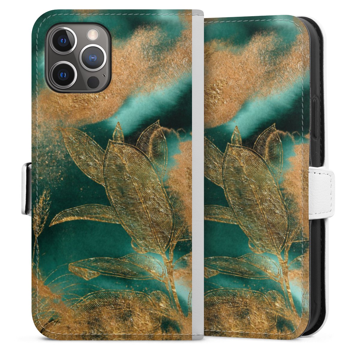 For our Sideflip Case we are using our advanced direct printing technology. The back and frontside are fully printabale, the inside of the phone bag is left unprinted. You can order the phone case without print, printed completely or also with a partial print.
