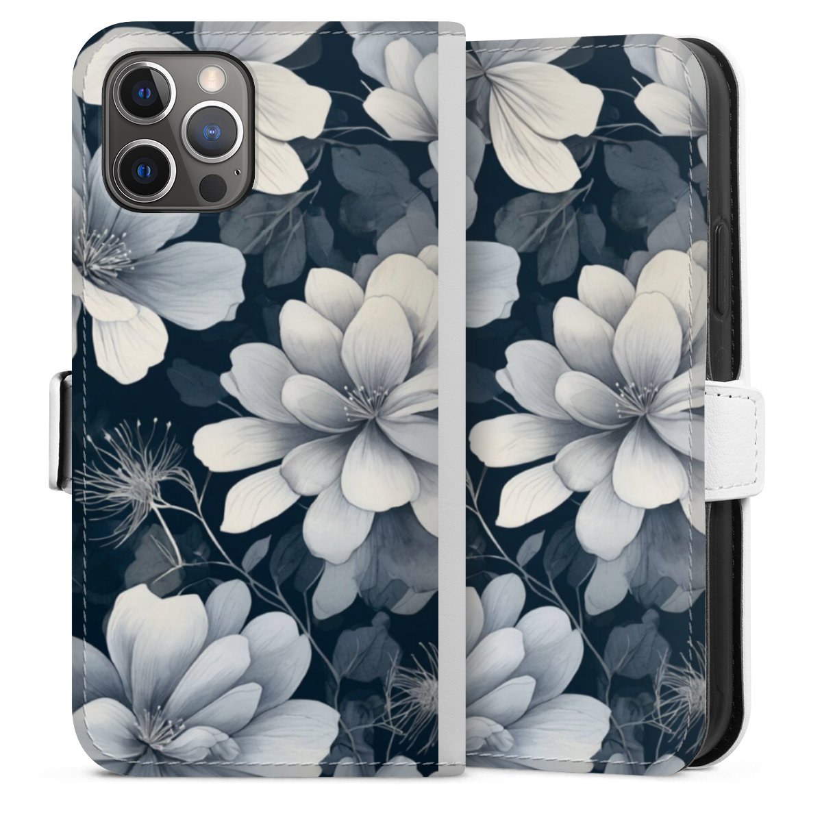 For our Sideflip Case we are using our advanced direct printing technology. The back and frontside are fully printabale, the inside of the phone bag is left unprinted. You can order the phone case without print, printed completely or also with a partial print.