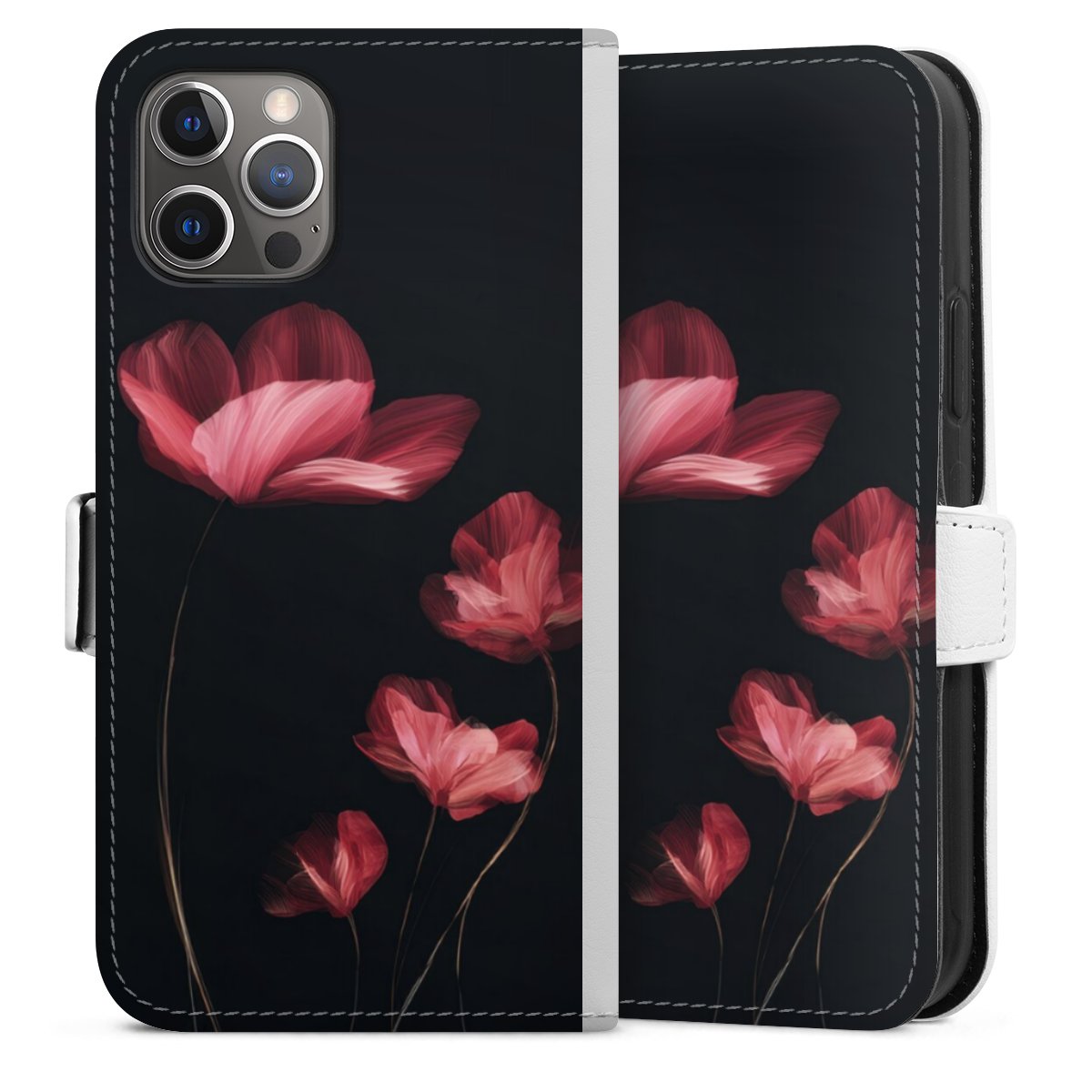 For our Sideflip Case we are using our advanced direct printing technology. The back and frontside are fully printabale, the inside of the phone bag is left unprinted. You can order the phone case without print, printed completely or also with a partial print.