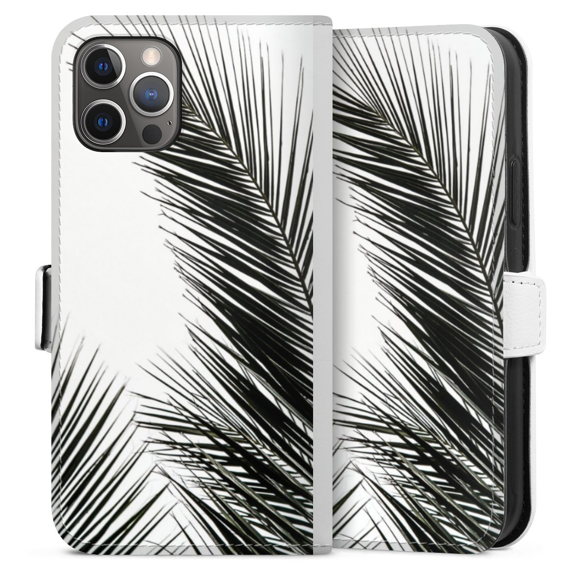 For our Sideflip Case we are using our advanced direct printing technology. The back and frontside are fully printabale, the inside of the phone bag is left unprinted. You can order the phone case without print, printed completely or also with a partial print.
