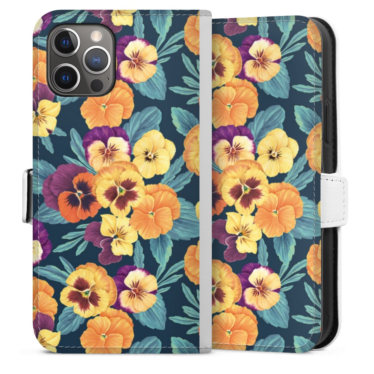 For our Sideflip Case we are using our advanced direct printing technology. The back and frontside are fully printabale, the inside of the phone bag is left unprinted. You can order the phone case without print, printed completely or also with a partial print.