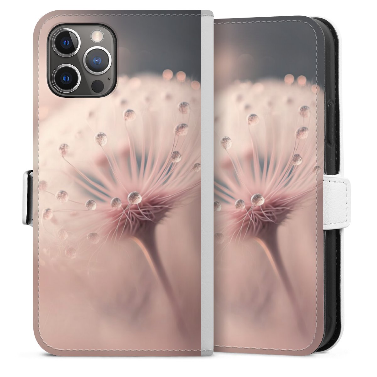 For our Sideflip Case we are using our advanced direct printing technology. The back and frontside are fully printabale, the inside of the phone bag is left unprinted. You can order the phone case without print, printed completely or also with a partial print.