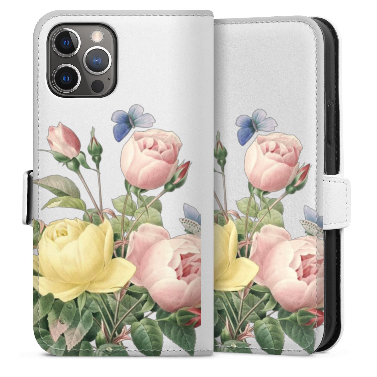 For our Sideflip Case we are using our advanced direct printing technology. The back and frontside are fully printabale, the inside of the phone bag is left unprinted. You can order the phone case without print, printed completely or also with a partial print.