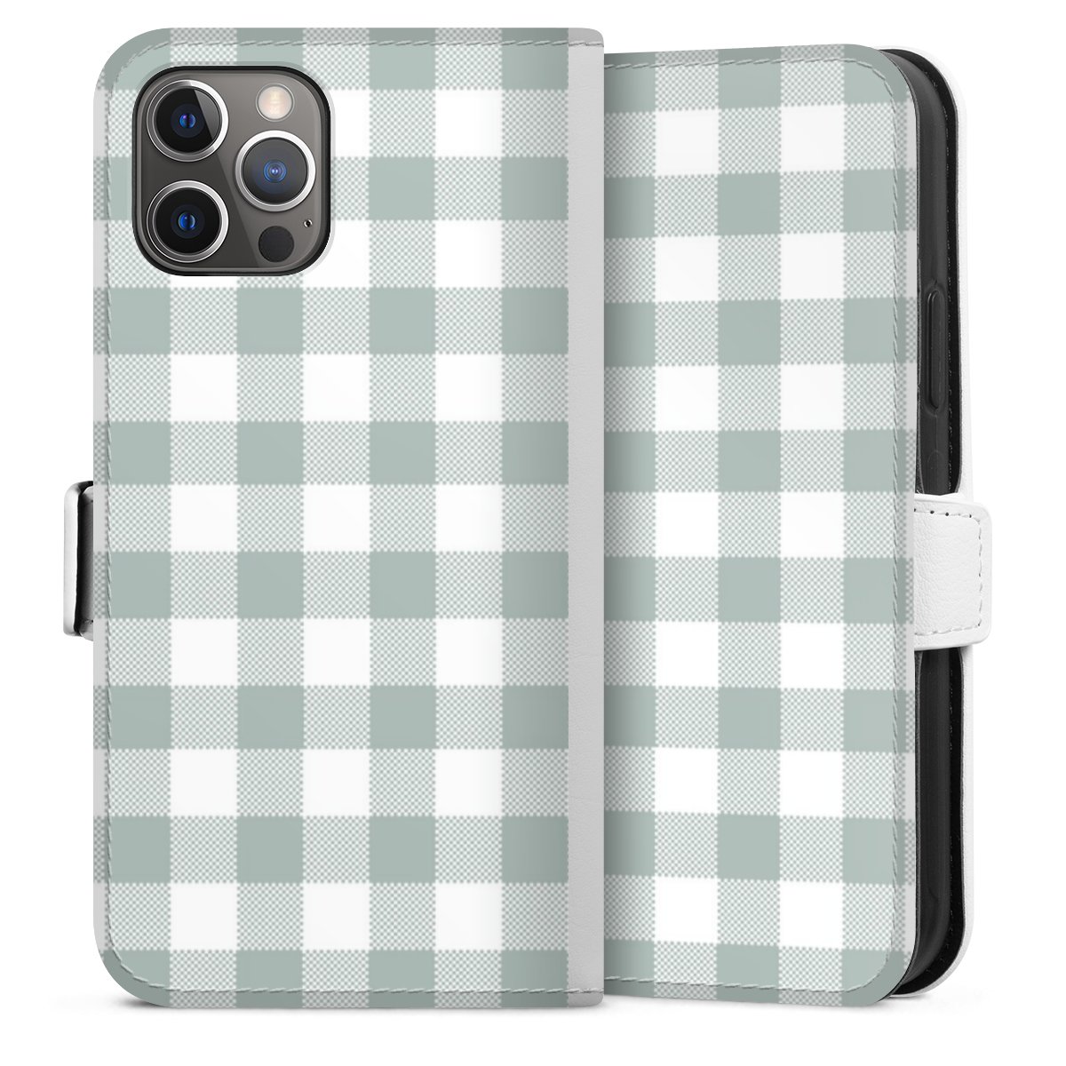 For our Sideflip Case we are using our advanced direct printing technology. The back and frontside are fully printabale, the inside of the phone bag is left unprinted. You can order the phone case without print, printed completely or also with a partial print.