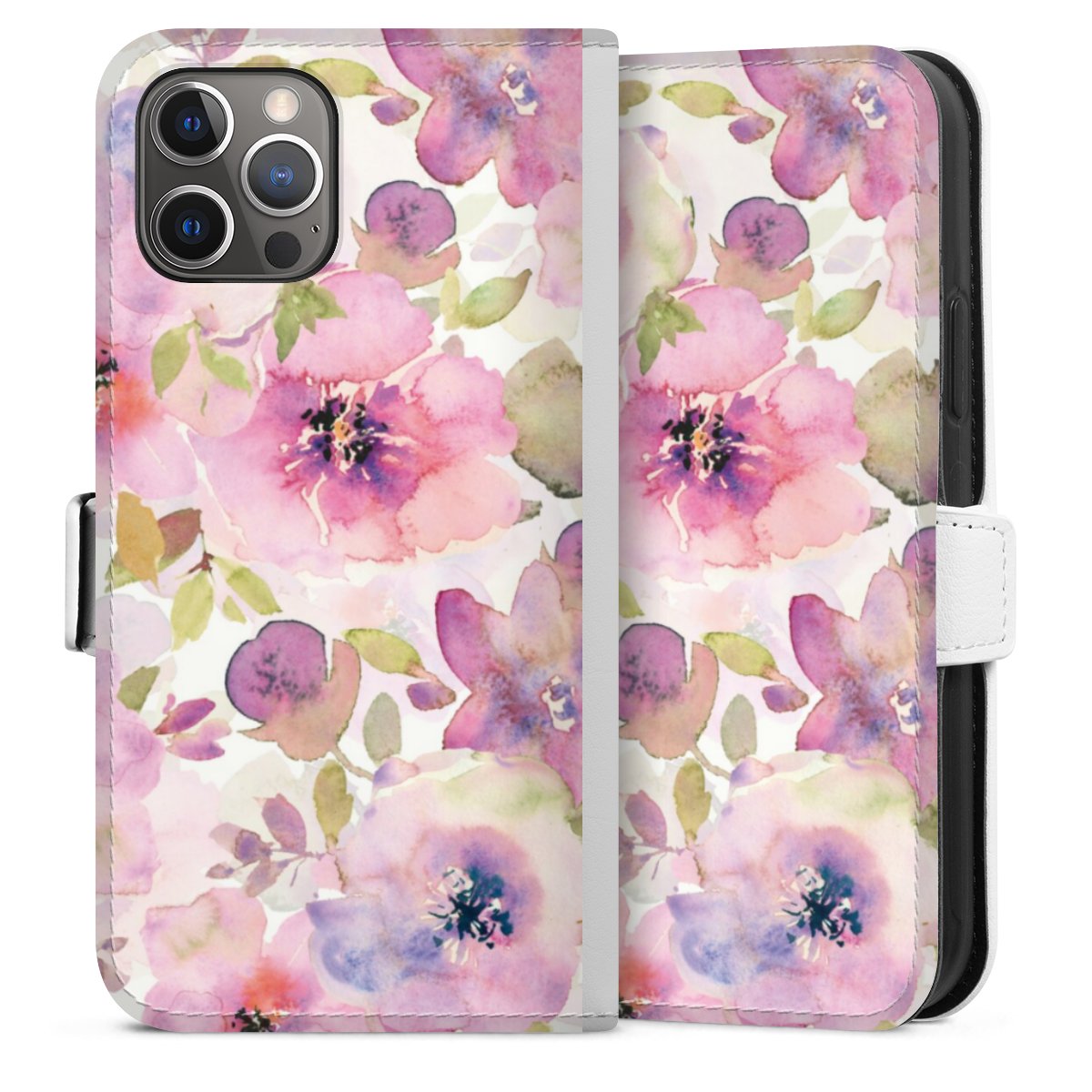 For our Sideflip Case we are using our advanced direct printing technology. The back and frontside are fully printabale, the inside of the phone bag is left unprinted. You can order the phone case without print, printed completely or also with a partial print.