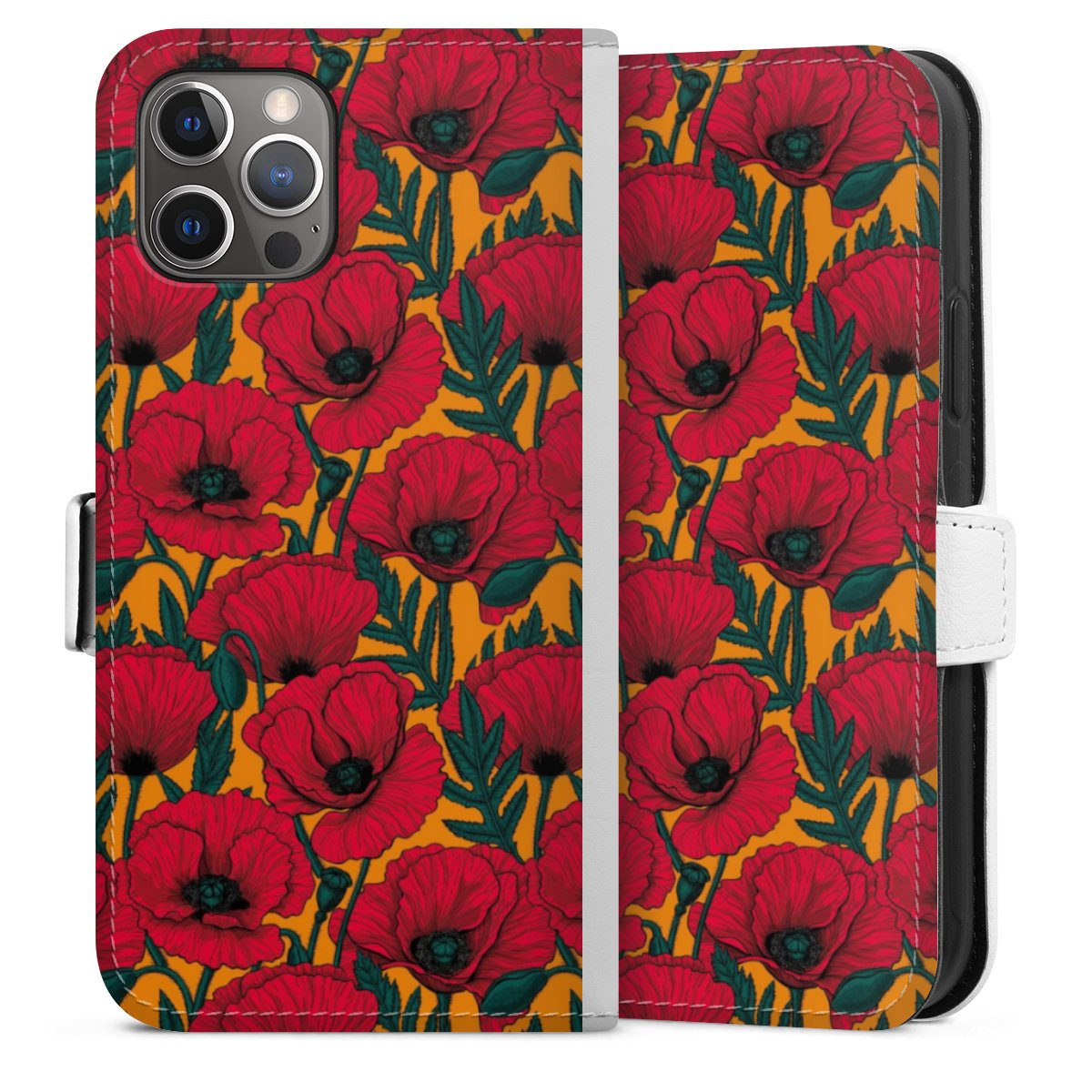 For our Sideflip Case we are using our advanced direct printing technology. The back and frontside are fully printabale, the inside of the phone bag is left unprinted. You can order the phone case without print, printed completely or also with a partial print.