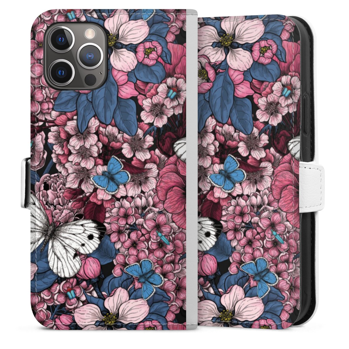 For our Sideflip Case we are using our advanced direct printing technology. The back and frontside are fully printabale, the inside of the phone bag is left unprinted. You can order the phone case without print, printed completely or also with a partial print.