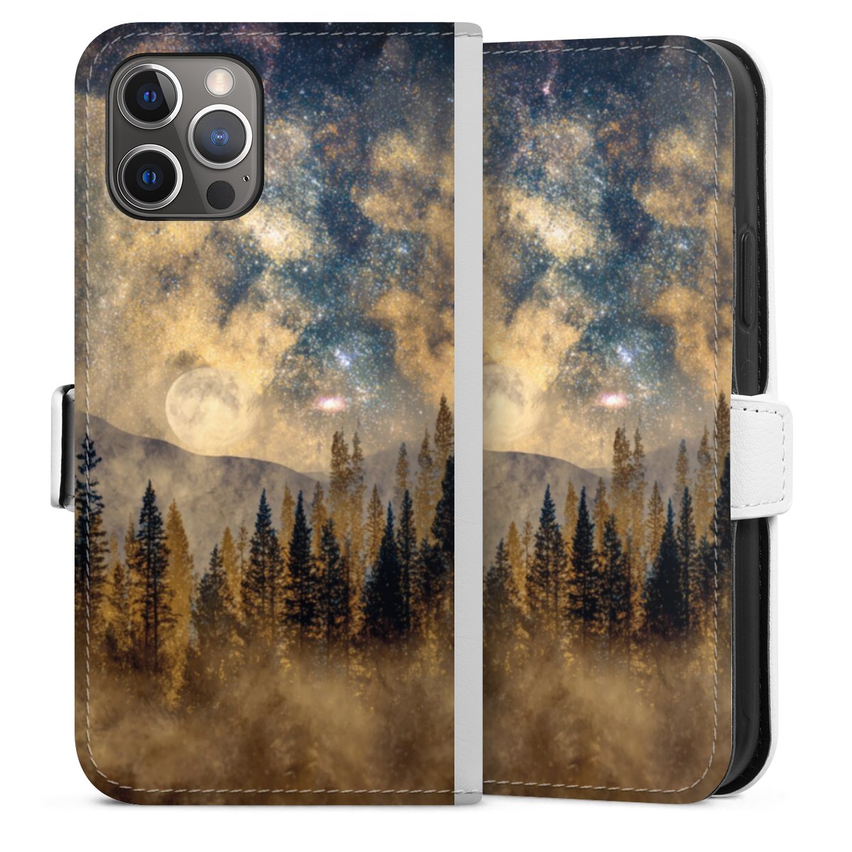 For our Sideflip Case we are using our advanced direct printing technology. The back and frontside are fully printabale, the inside of the phone bag is left unprinted. You can order the phone case without print, printed completely or also with a partial print.
