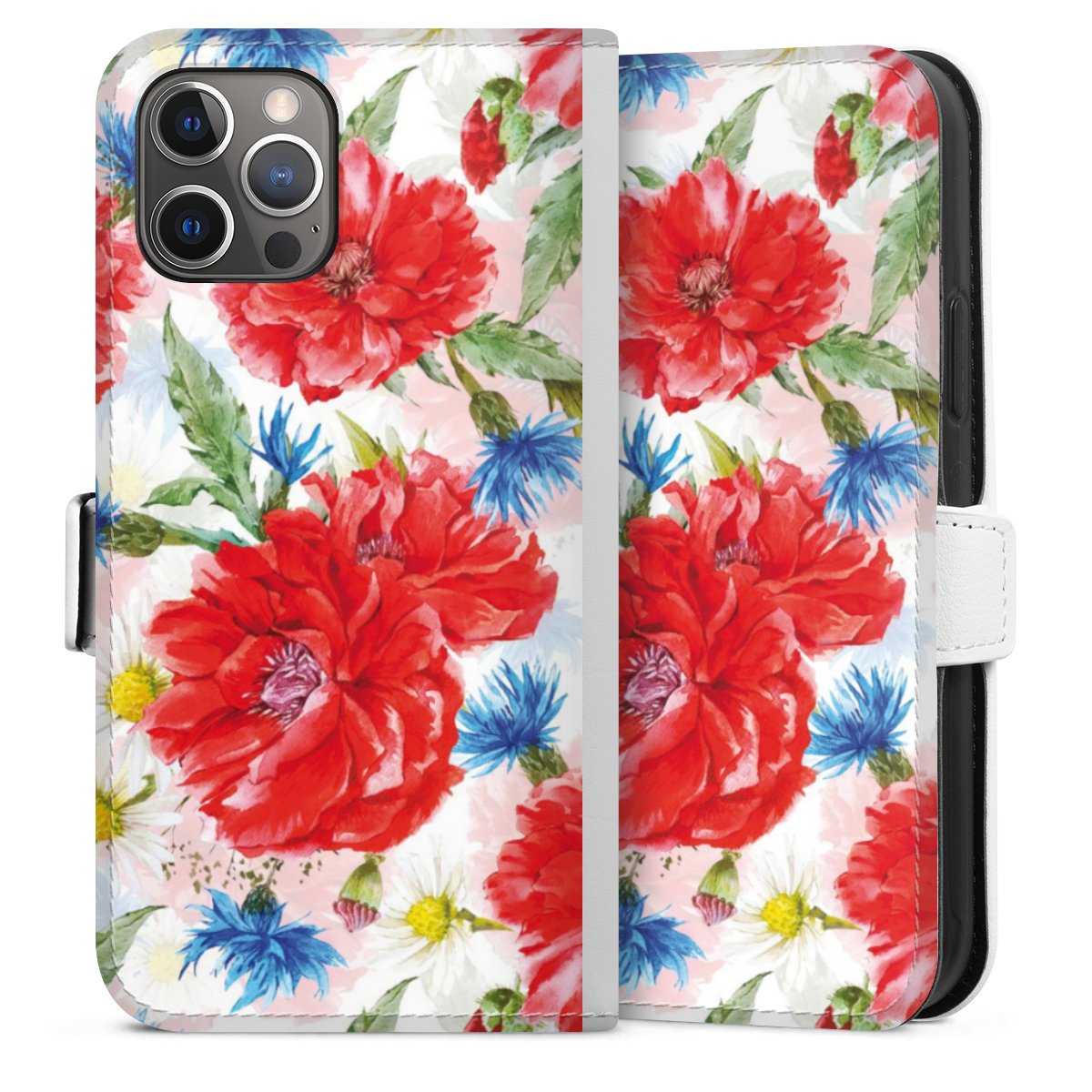 For our Sideflip Case we are using our advanced direct printing technology. The back and frontside are fully printabale, the inside of the phone bag is left unprinted. You can order the phone case without print, printed completely or also with a partial print.