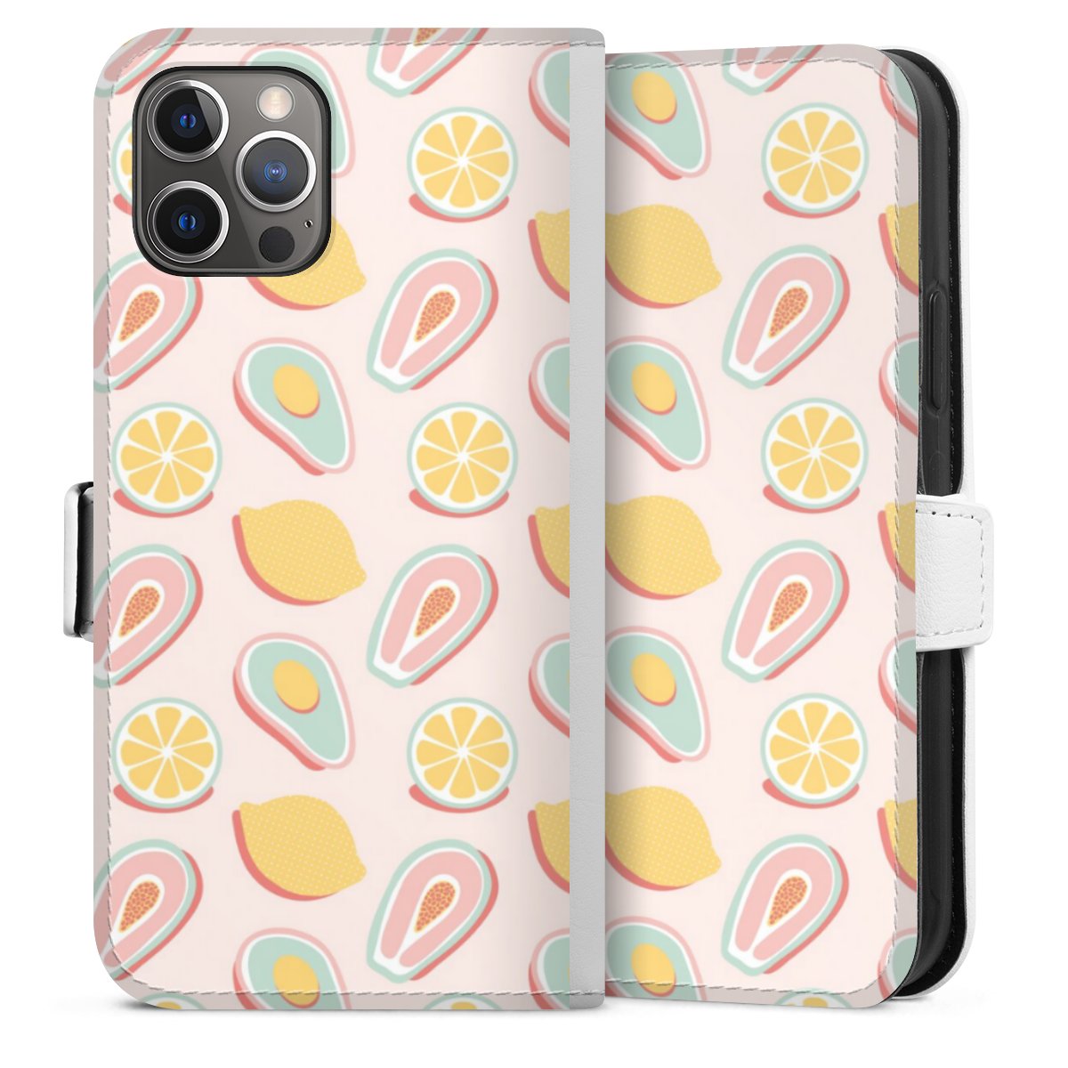 For our Sideflip Case we are using our advanced direct printing technology. The back and frontside are fully printabale, the inside of the phone bag is left unprinted. You can order the phone case without print, printed completely or also with a partial print.