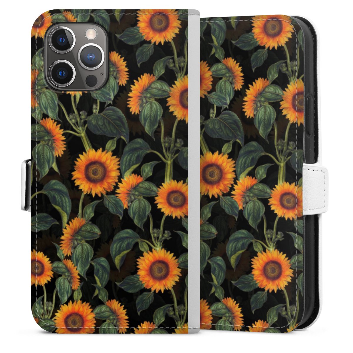 For our Sideflip Case we are using our advanced direct printing technology. The back and frontside are fully printabale, the inside of the phone bag is left unprinted. You can order the phone case without print, printed completely or also with a partial print.