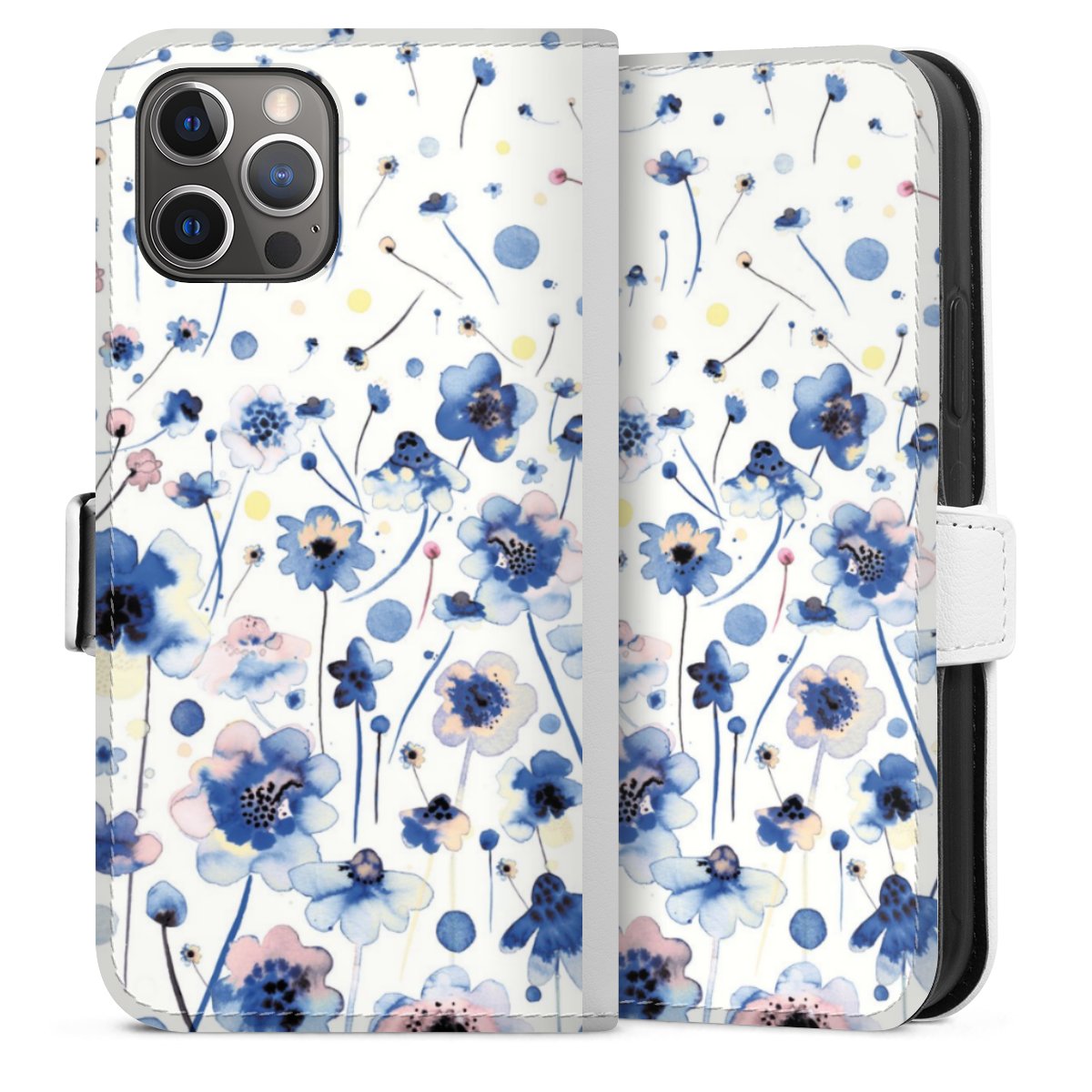 For our Sideflip Case we are using our advanced direct printing technology. The back and frontside are fully printabale, the inside of the phone bag is left unprinted. You can order the phone case without print, printed completely or also with a partial print.