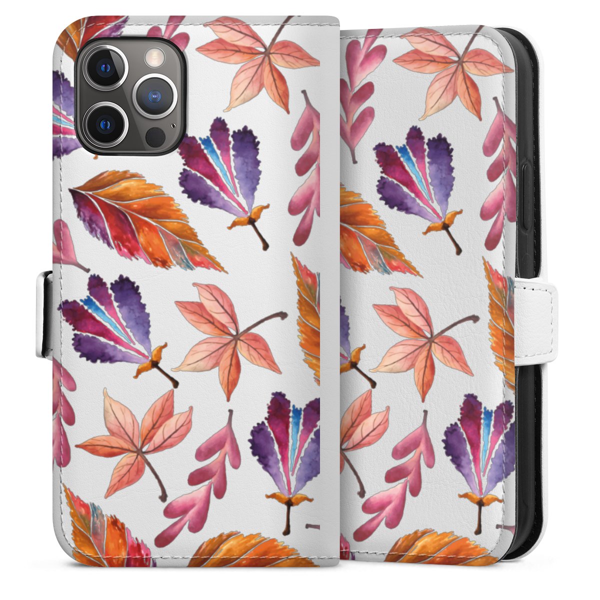For our Sideflip Case we are using our advanced direct printing technology. The back and frontside are fully printabale, the inside of the phone bag is left unprinted. You can order the phone case without print, printed completely or also with a partial print.