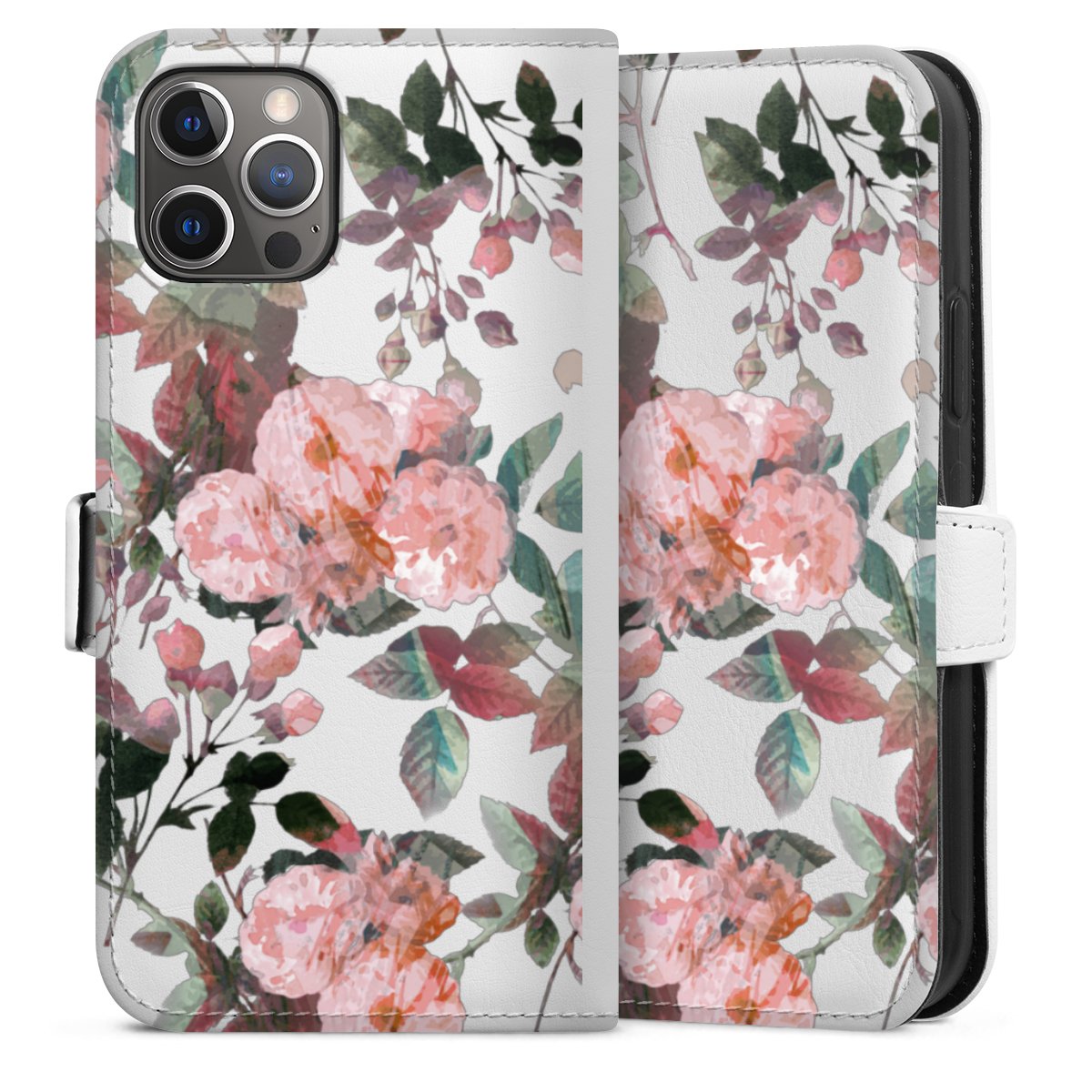 For our Sideflip Case we are using our advanced direct printing technology. The back and frontside are fully printabale, the inside of the phone bag is left unprinted. You can order the phone case without print, printed completely or also with a partial print.
