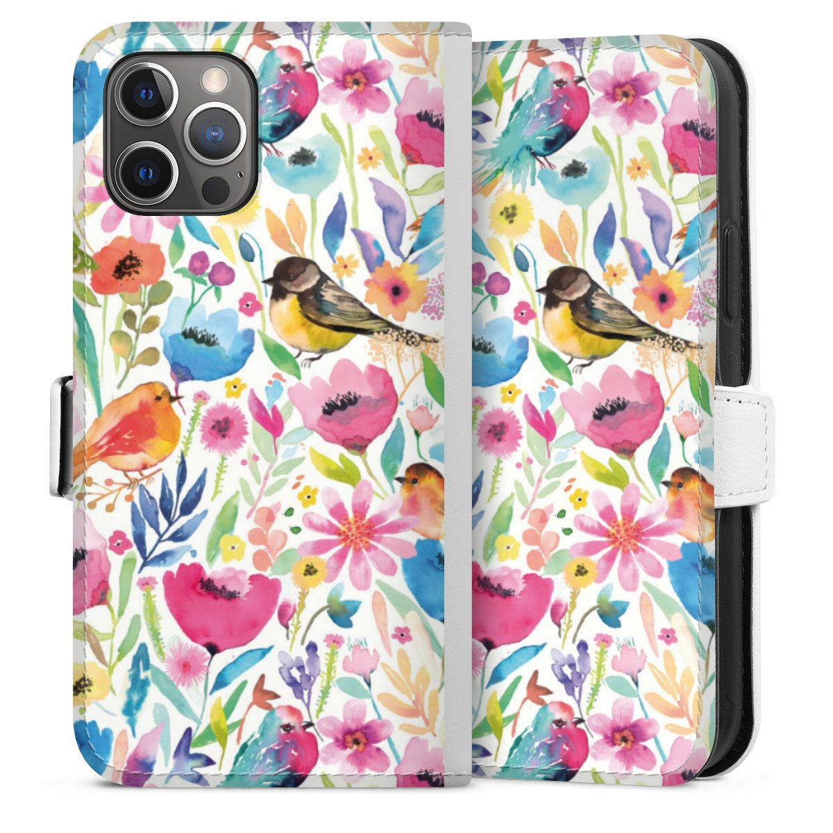 For our Sideflip Case we are using our advanced direct printing technology. The back and frontside are fully printabale, the inside of the phone bag is left unprinted. You can order the phone case without print, printed completely or also with a partial print.