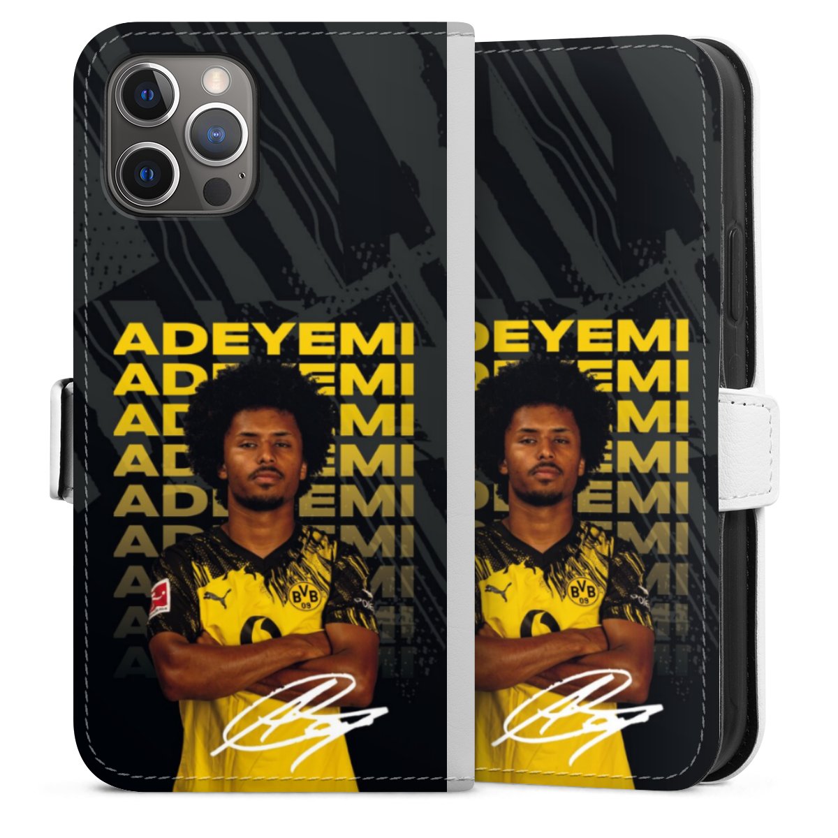 For our Sideflip Case we are using our advanced direct printing technology. The back and frontside are fully printabale, the inside of the phone bag is left unprinted. You can order the phone case without print, printed completely or also with a partial print.