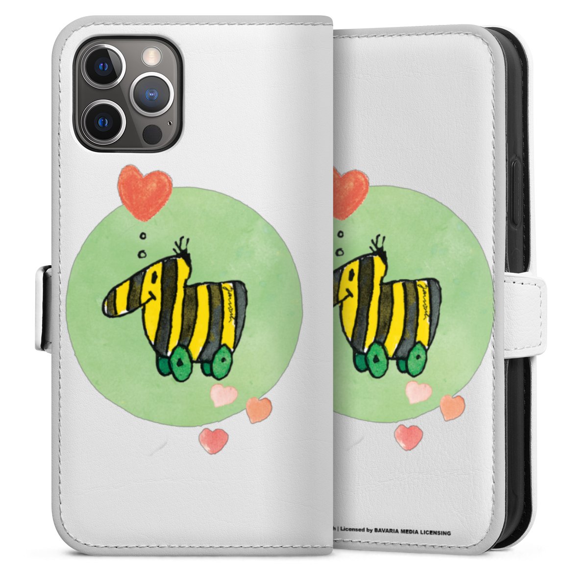 For our Sideflip Case we are using our advanced direct printing technology. The back and frontside are fully printabale, the inside of the phone bag is left unprinted. You can order the phone case without print, printed completely or also with a partial print.