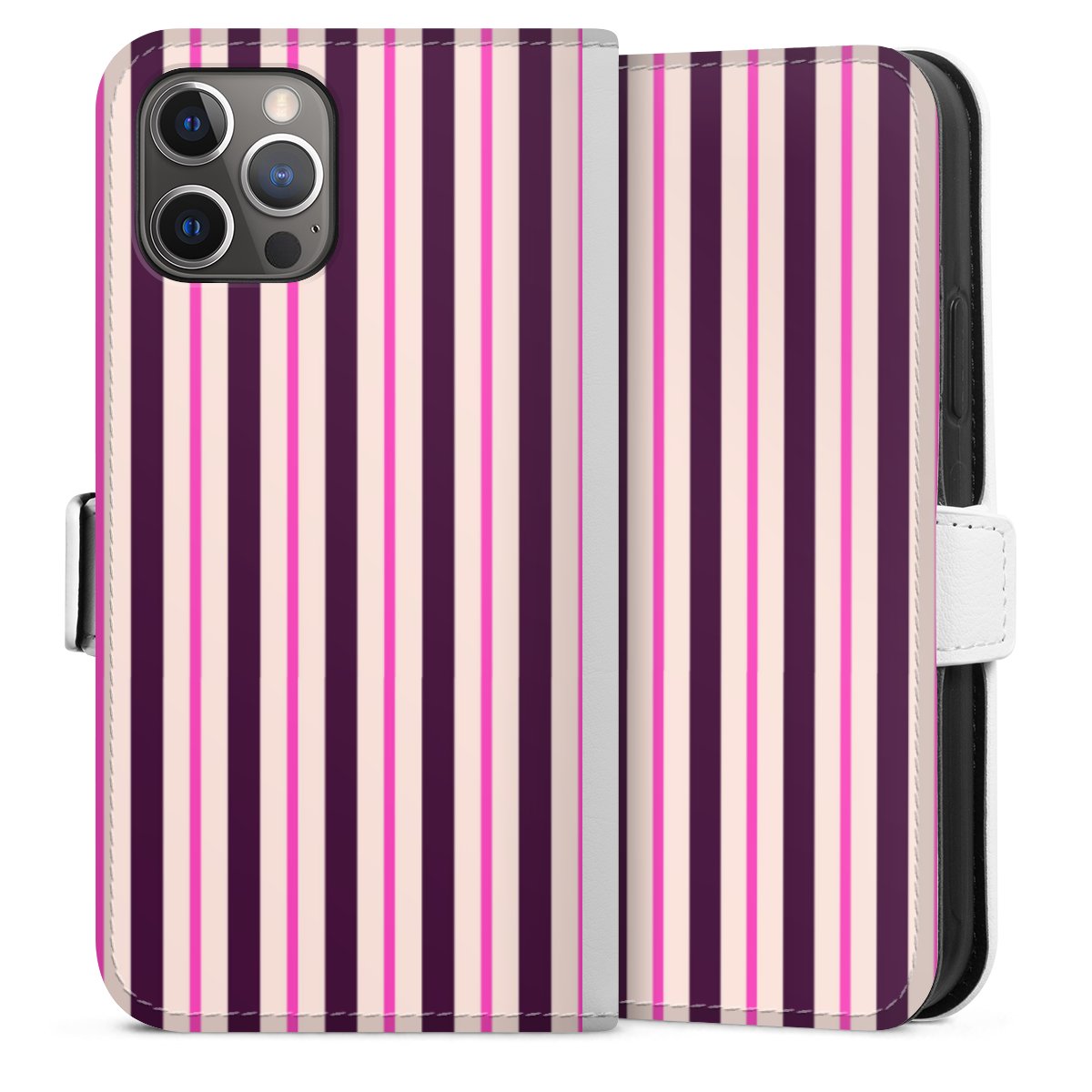 For our Sideflip Case we are using our advanced direct printing technology. The back and frontside are fully printabale, the inside of the phone bag is left unprinted. You can order the phone case without print, printed completely or also with a partial print.