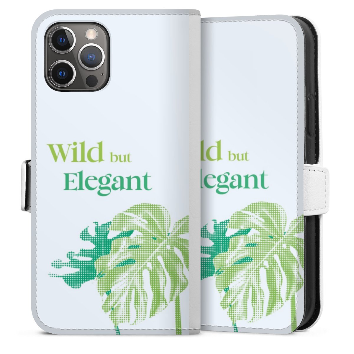 For our Sideflip Case we are using our advanced direct printing technology. The back and frontside are fully printabale, the inside of the phone bag is left unprinted. You can order the phone case without print, printed completely or also with a partial print.