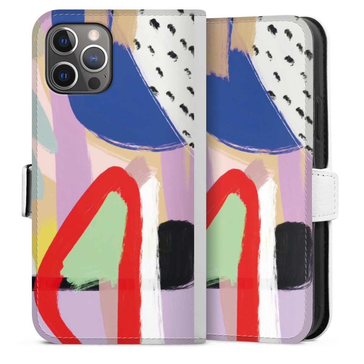 For our Sideflip Case we are using our advanced direct printing technology. The back and frontside are fully printabale, the inside of the phone bag is left unprinted. You can order the phone case without print, printed completely or also with a partial print.