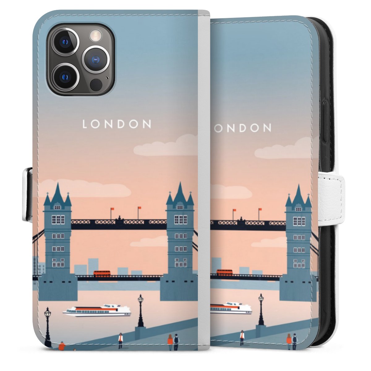 For our Sideflip Case we are using our advanced direct printing technology. The back and frontside are fully printabale, the inside of the phone bag is left unprinted. You can order the phone case without print, printed completely or also with a partial print.