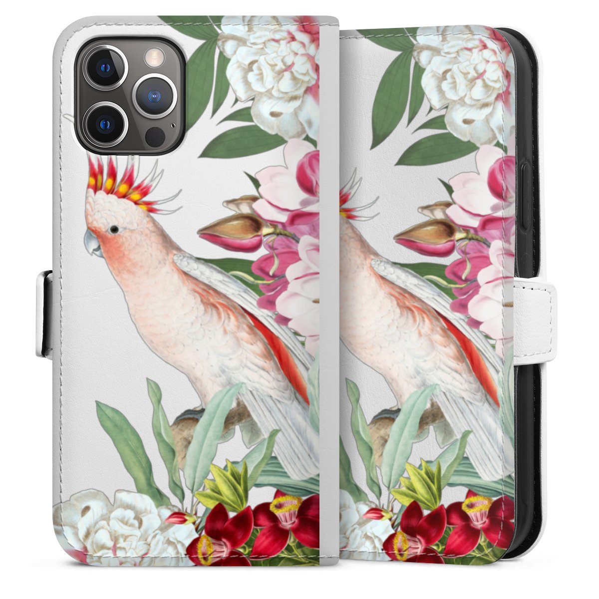 For our Sideflip Case we are using our advanced direct printing technology. The back and frontside are fully printabale, the inside of the phone bag is left unprinted. You can order the phone case without print, printed completely or also with a partial print.