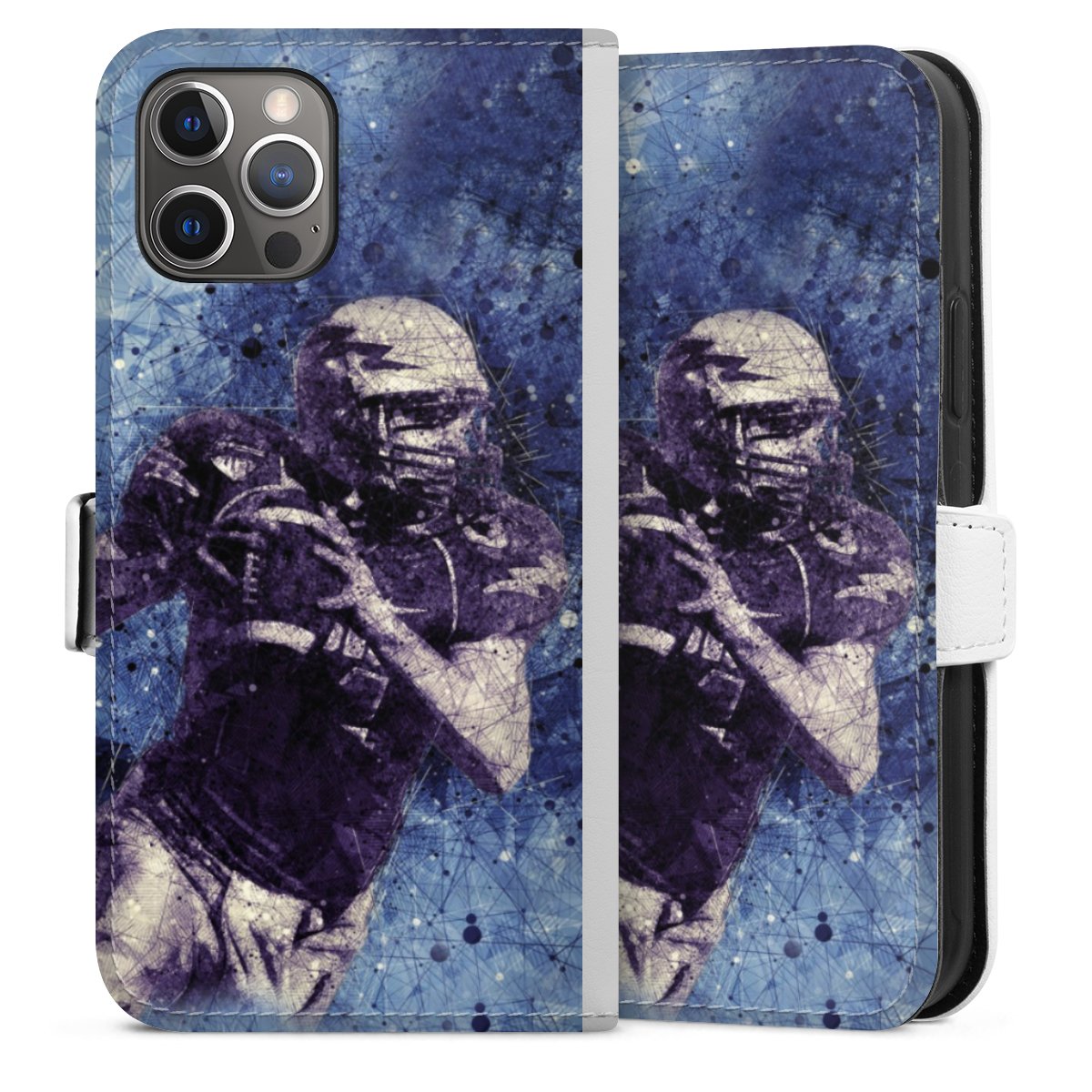 For our Sideflip Case we are using our advanced direct printing technology. The back and frontside are fully printabale, the inside of the phone bag is left unprinted. You can order the phone case without print, printed completely or also with a partial print.