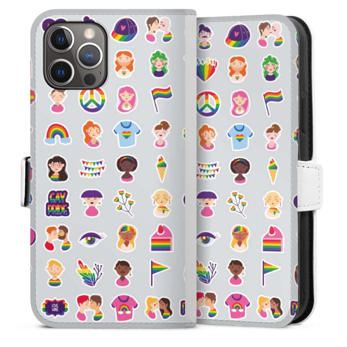 For our Sideflip Case we are using our advanced direct printing technology. The back and frontside are fully printabale, the inside of the phone bag is left unprinted. You can order the phone case without print, printed completely or also with a partial print.