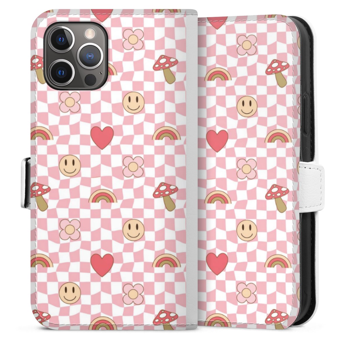 For our Sideflip Case we are using our advanced direct printing technology. The back and frontside are fully printabale, the inside of the phone bag is left unprinted. You can order the phone case without print, printed completely or also with a partial print.
