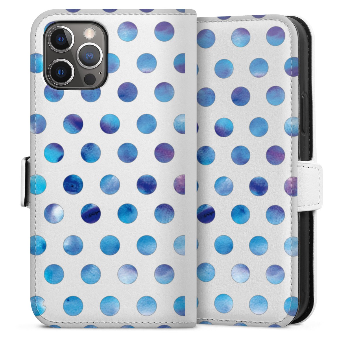 For our Sideflip Case we are using our advanced direct printing technology. The back and frontside are fully printabale, the inside of the phone bag is left unprinted. You can order the phone case without print, printed completely or also with a partial print.