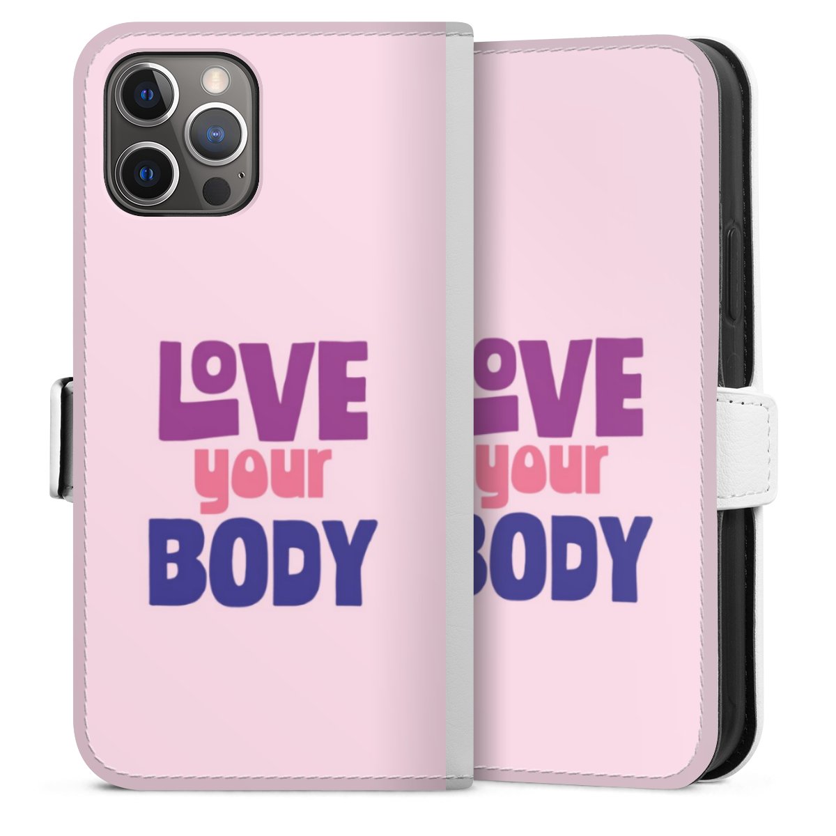 For our Sideflip Case we are using our advanced direct printing technology. The back and frontside are fully printabale, the inside of the phone bag is left unprinted. You can order the phone case without print, printed completely or also with a partial print.