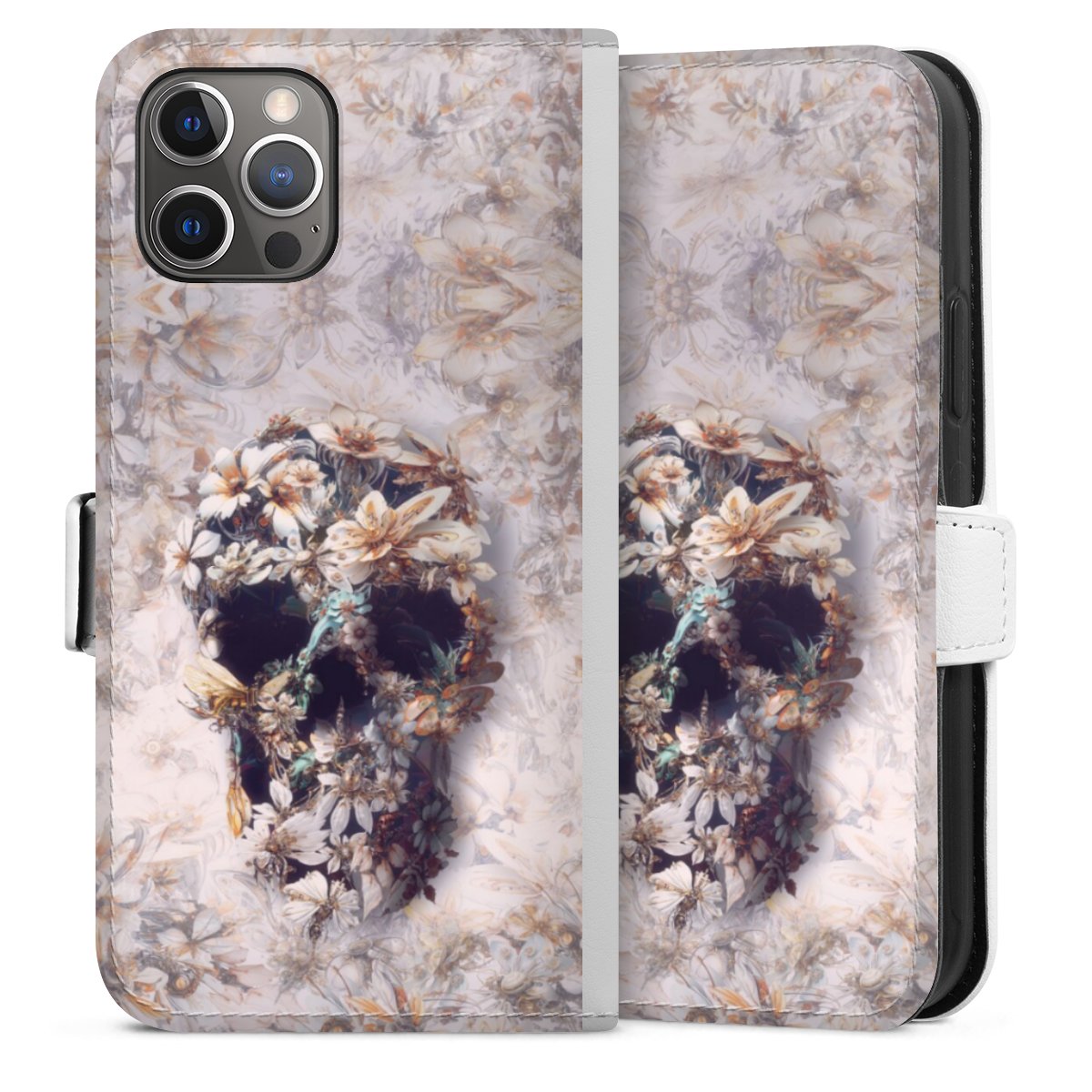 For our Sideflip Case we are using our advanced direct printing technology. The back and frontside are fully printabale, the inside of the phone bag is left unprinted. You can order the phone case without print, printed completely or also with a partial print.