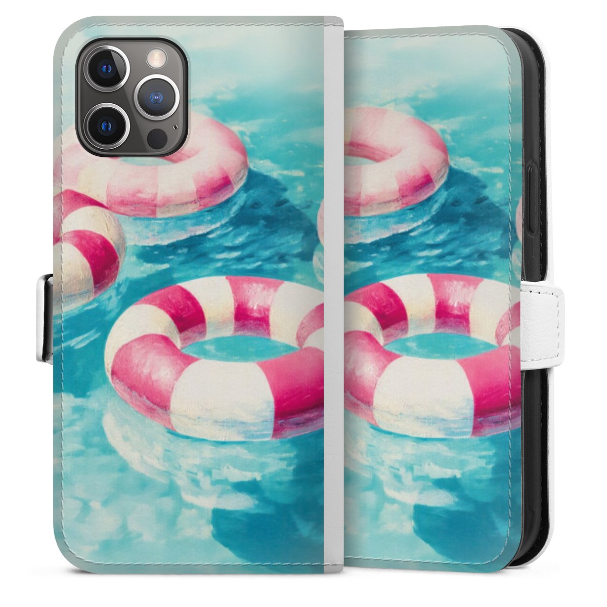 For our Sideflip Case we are using our advanced direct printing technology. The back and frontside are fully printabale, the inside of the phone bag is left unprinted. You can order the phone case without print, printed completely or also with a partial print.