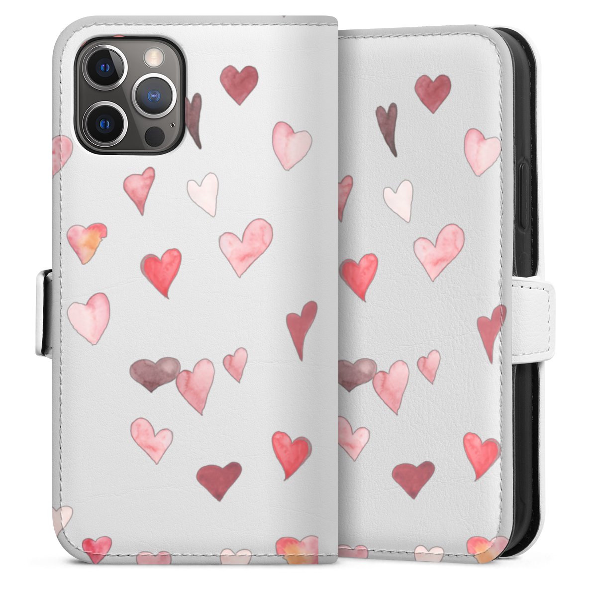 For our Sideflip Case we are using our advanced direct printing technology. The back and frontside are fully printabale, the inside of the phone bag is left unprinted. You can order the phone case without print, printed completely or also with a partial print.