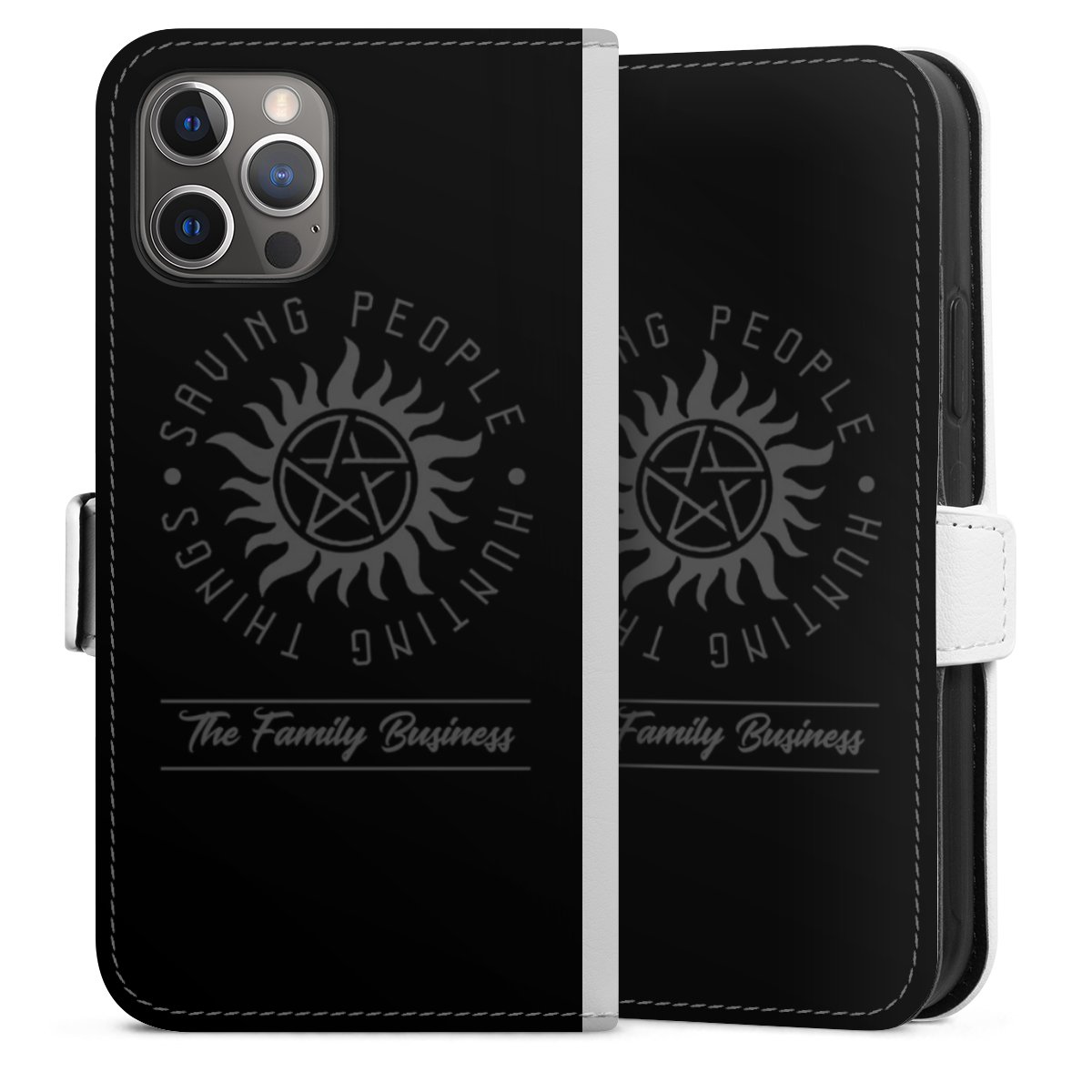 For our Sideflip Case we are using our advanced direct printing technology. The back and frontside are fully printabale, the inside of the phone bag is left unprinted. You can order the phone case without print, printed completely or also with a partial print.