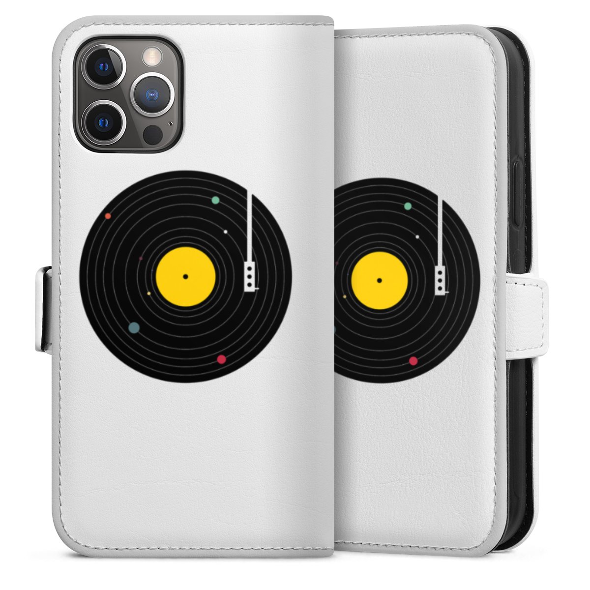For our Sideflip Case we are using our advanced direct printing technology. The back and frontside are fully printabale, the inside of the phone bag is left unprinted. You can order the phone case without print, printed completely or also with a partial print.