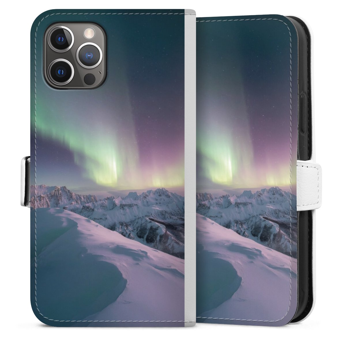 For our Sideflip Case we are using our advanced direct printing technology. The back and frontside are fully printabale, the inside of the phone bag is left unprinted. You can order the phone case without print, printed completely or also with a partial print.
