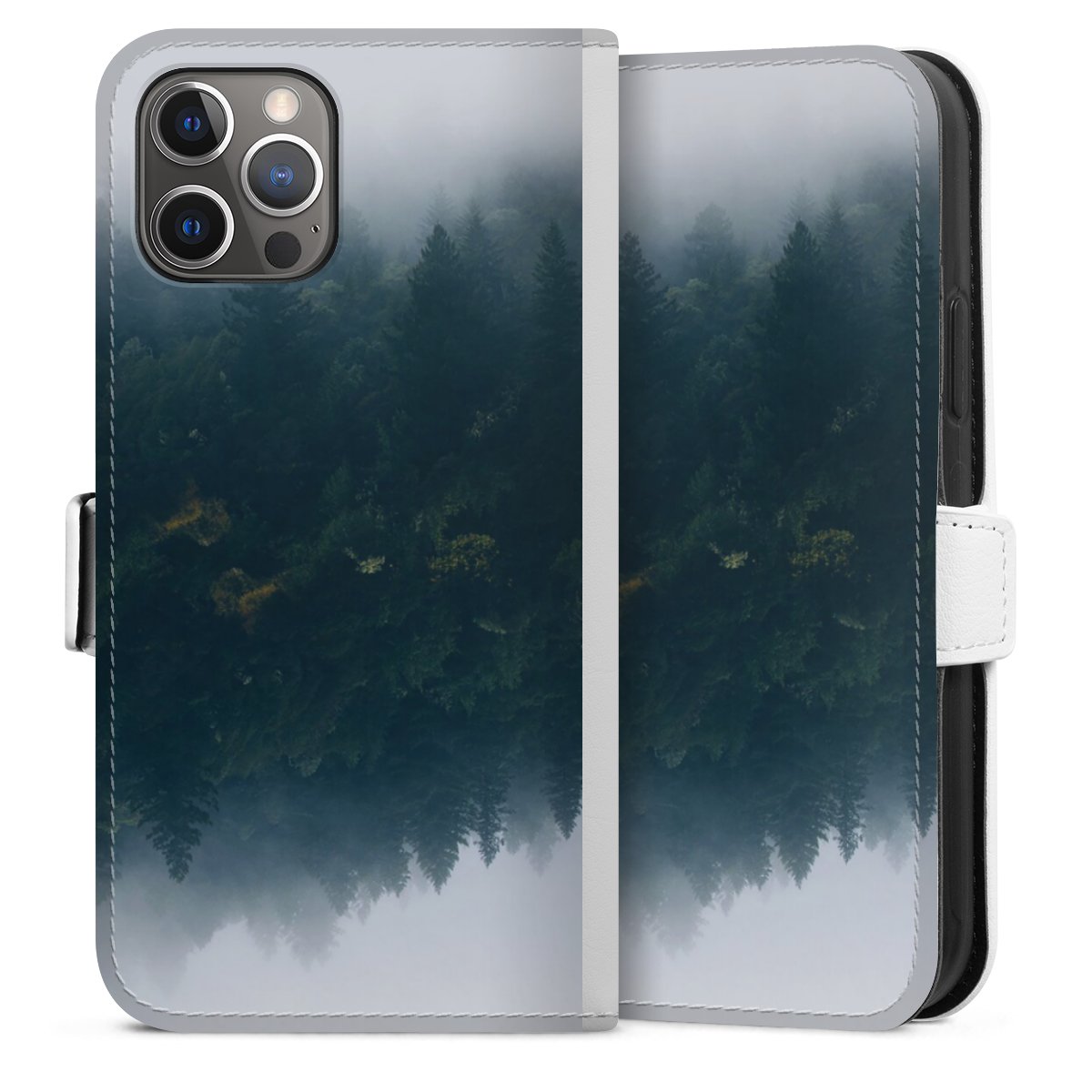For our Sideflip Case we are using our advanced direct printing technology. The back and frontside are fully printabale, the inside of the phone bag is left unprinted. You can order the phone case without print, printed completely or also with a partial print.