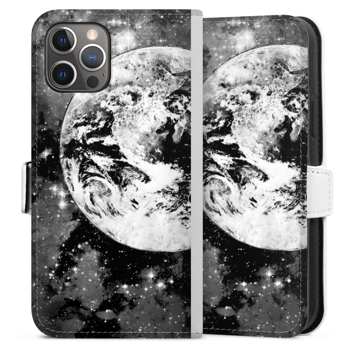 For our Sideflip Case we are using our advanced direct printing technology. The back and frontside are fully printabale, the inside of the phone bag is left unprinted. You can order the phone case without print, printed completely or also with a partial print.