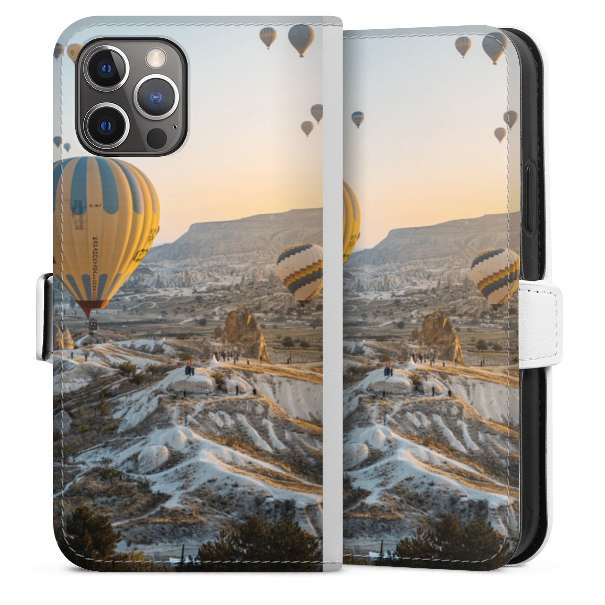 For our Sideflip Case we are using our advanced direct printing technology. The back and frontside are fully printabale, the inside of the phone bag is left unprinted. You can order the phone case without print, printed completely or also with a partial print.