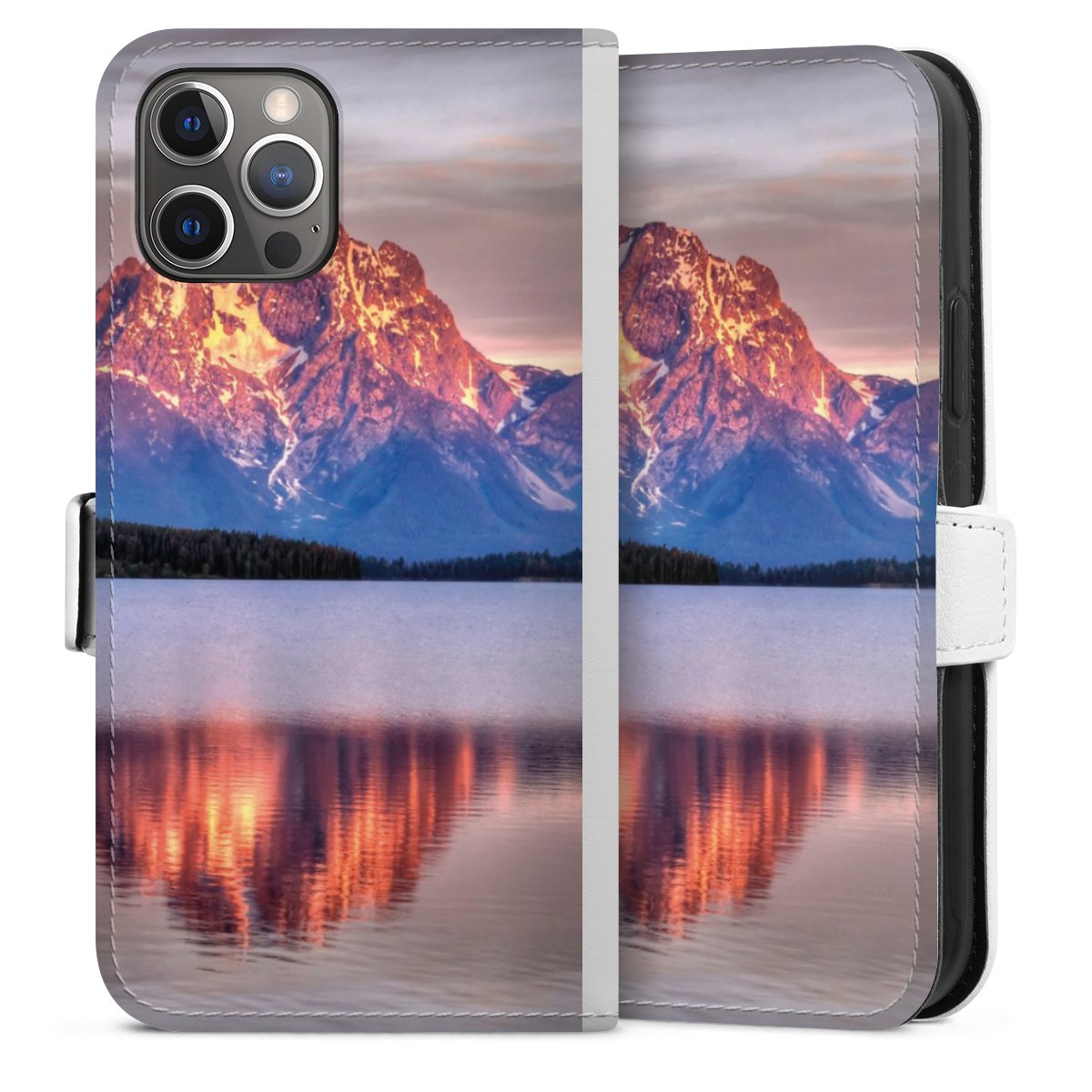 For our Sideflip Case we are using our advanced direct printing technology. The back and frontside are fully printabale, the inside of the phone bag is left unprinted. You can order the phone case without print, printed completely or also with a partial print.