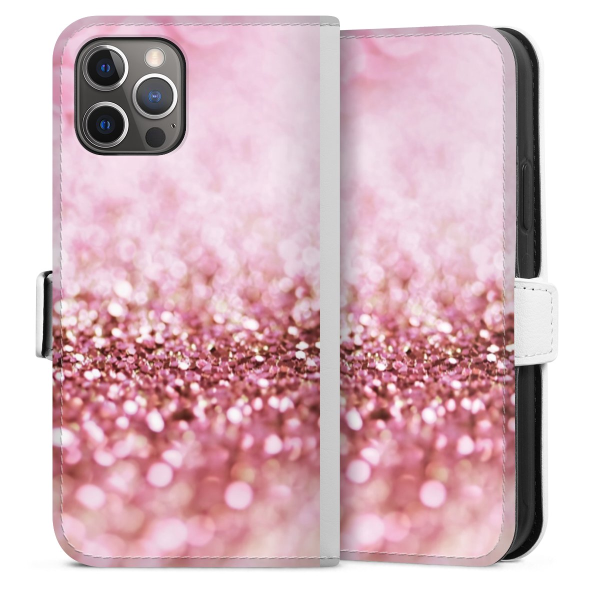 For our Sideflip Case we are using our advanced direct printing technology. The back and frontside are fully printabale, the inside of the phone bag is left unprinted. You can order the phone case without print, printed completely or also with a partial print.
