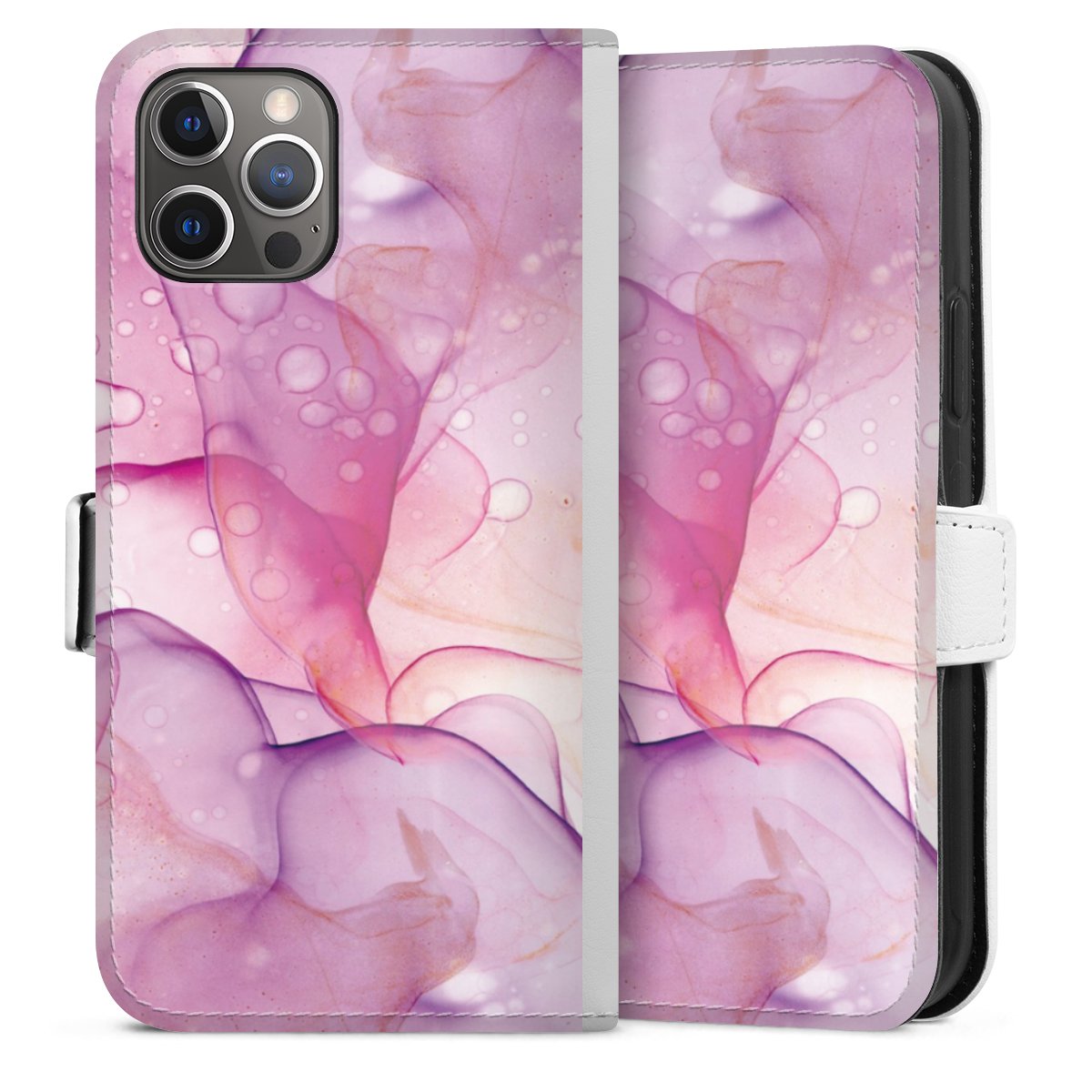For our Sideflip Case we are using our advanced direct printing technology. The back and frontside are fully printabale, the inside of the phone bag is left unprinted. You can order the phone case without print, printed completely or also with a partial print.