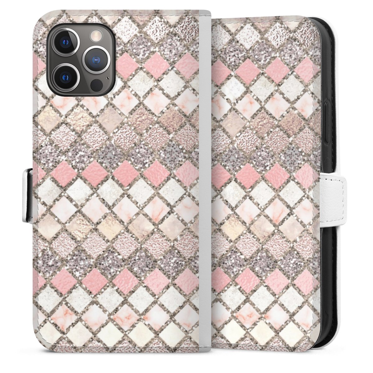 For our Sideflip Case we are using our advanced direct printing technology. The back and frontside are fully printabale, the inside of the phone bag is left unprinted. You can order the phone case without print, printed completely or also with a partial print.