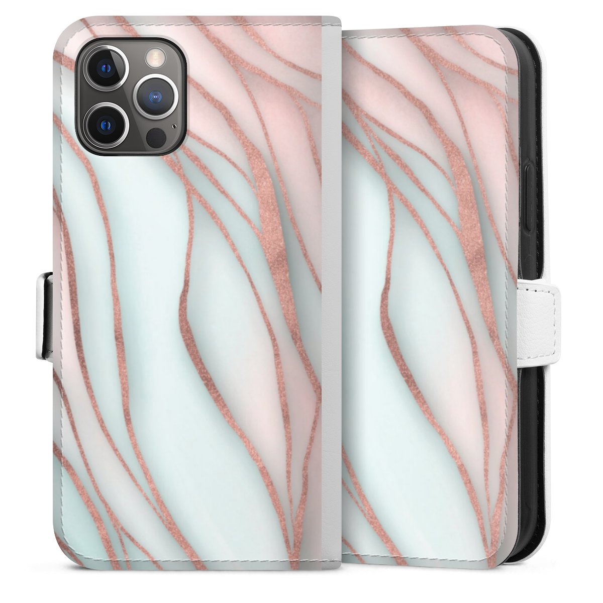 For our Sideflip Case we are using our advanced direct printing technology. The back and frontside are fully printabale, the inside of the phone bag is left unprinted. You can order the phone case without print, printed completely or also with a partial print.